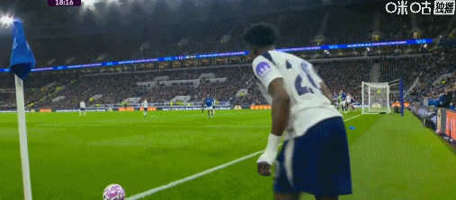 第45+6分钟,波罗开出角球,范德芬头球双响,热刺2-0埃弗顿